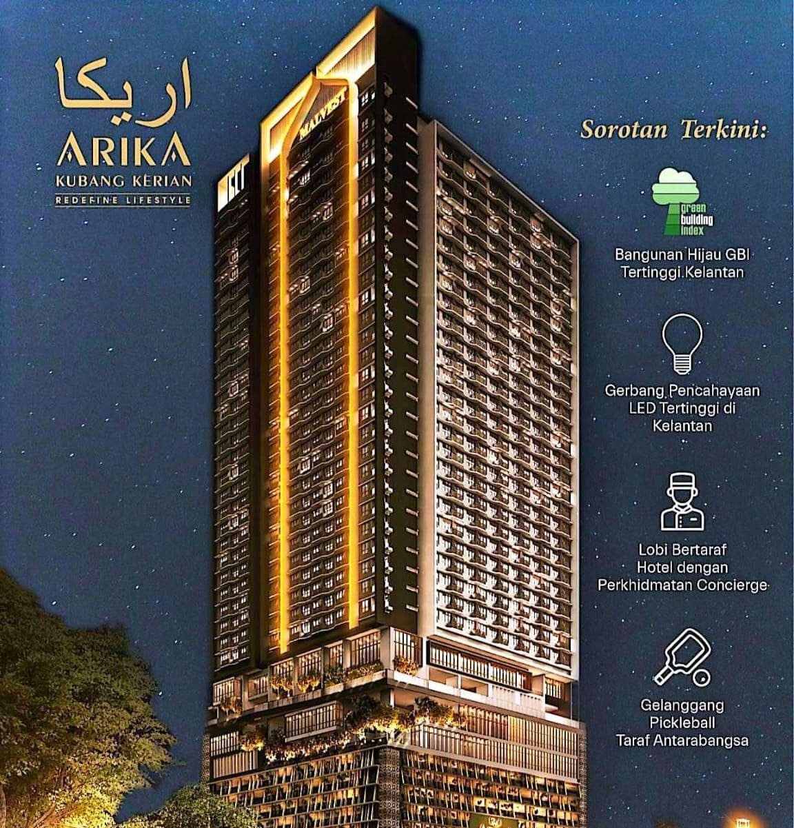 Arika Kubang Kerian adalah pilihan utama kerana ia merupakan projek serviced residence ikonik dan bakal menjadi bangunan tertinggi di Kelantan, menawarkan gaya hidup moden serta potensi pelaburan jangka panjang yang kukuh. Terletak di pusat pertumbuhan pesat, ia menawarkan keselamatan tinggi (gated & guarded), berhampiran dengan USM dan kemudahan asas, menjadikannya sesuai untuk pelaburan risiko rendah dengan permintaan sewaan yang tinggi.